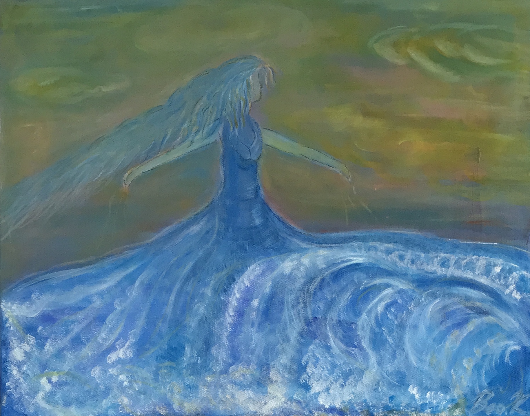 This artwork has actually a beautiful story. I got inspired by a photograph seen online of a young girl standing with her feet in the ocean, facing the horizont. After I painted this painting and posted it on my social media, a childhood friend whom I didn’t see in more than 20 years, contacted me saying ‘what a wonderful painting, it reminds me of a photograph I took of my daughter a few years ago’ ! OMG I got goosebumps! This guy became a professional photographer and the picture that inspired me to my painting was indeed by him! Life writes beautiful skrips !